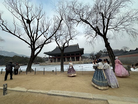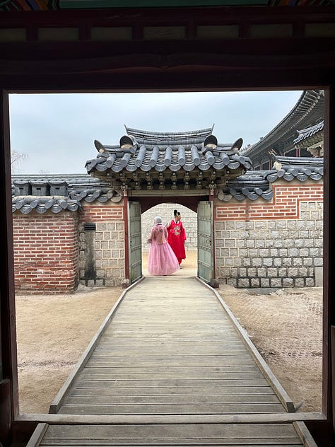 If I could have stayed longer, I would have. I spent a week in Seoul at the beginning of February, staying in the Myeongdong district. My stay featured my brand of tourism: finding food, stumbling upon landmarks and navigating specifically to others, eating, and taking class. Of course South Korea is known for K-Pop, karaoke, and nightlife, but, in the interests of time and energy (jet lag was real), I largely invested my efforts in more daytime pursuits. Training brought me to fitness and dance spaces, but I also managed to slip in visits to ancient sites, contemporary galleries, futuristic shopping complexes, pop-up shops, coffee houses, more sock stores than I’ve ever seen or fathomed a need for, outdoor markets, and food halls that rival Harrods and Galleries Lafayette. I became well acquainted with the subway and, while I don’t track my steps, the state of my feet will tell me that I walked… a lot.