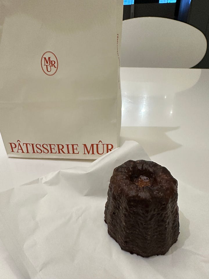 I had one of the better canelés I’ve tasted at Patisserie Mur in the Starfield COEX food hall. Canelés have been trending for years, but they are often, in my experience, poorly executed. Traditionally baked in copper molds coated with beeswax, they should have a dark, caramelized crust and a custard-like centre, not the uniformly hard texture of a small pound cake. I’m more of a cook than a baker, but I appreciate the technical precision and consistency required to execute pastry well.
