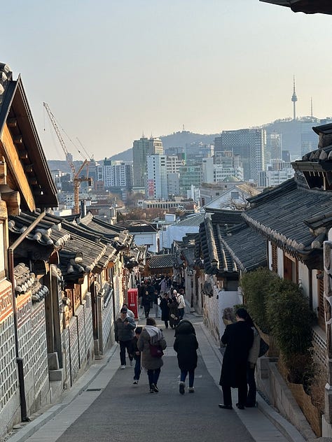 Outside of formal training, I walked. A lot. I moved through the historic lanes of Bukchon Hanok Village and across the grounds of Gyeongbokgung Palace; past the National Museum of Modern and Contemporary Art, where a remaining installation from the Seoul Biennale of Architecture and Urbanism, the “Wall of Humanism”, stood as part of the city’s ongoing examination of density, housing, infrastructure, and public space. I continued through the university energy around Dongdaemun; through the former shoe factories and warehouse buildings of Seongsu, now converted into cafés and brand pop-ups ranging from local retailers like Musinsa to international names like Adidas; an evening spent at Gwangjang Market; and through Myeongdong’s dense shopping areas, vibrant night markets, cosmetics counters on every corner, and everything in between.